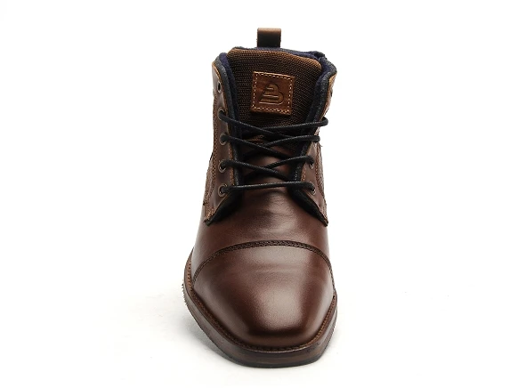Messieurs, cette boots BULLBOXER est faite pour vous! Sa tige en cuir marron possède une coupe raffinée et chic avec des empiècements de différentes textures. Cette paire de chaussures s’accordera parfaitement avec tout votre dressing pour vous offrir des looks élégants. Les lacets bleus sont accompagnés d’une fermeture éclair qui vous garantira un enfilage rapide et simple en toutes occasions. Profitez de la doublure en textile qui protègera vos pieds du froid. La semelle intérieure est amovible, cela vous donnera la possibilité d’y ajouter vos propres semelles pour un confort optimal. De plus, ces chaussures sont antidérapantes!